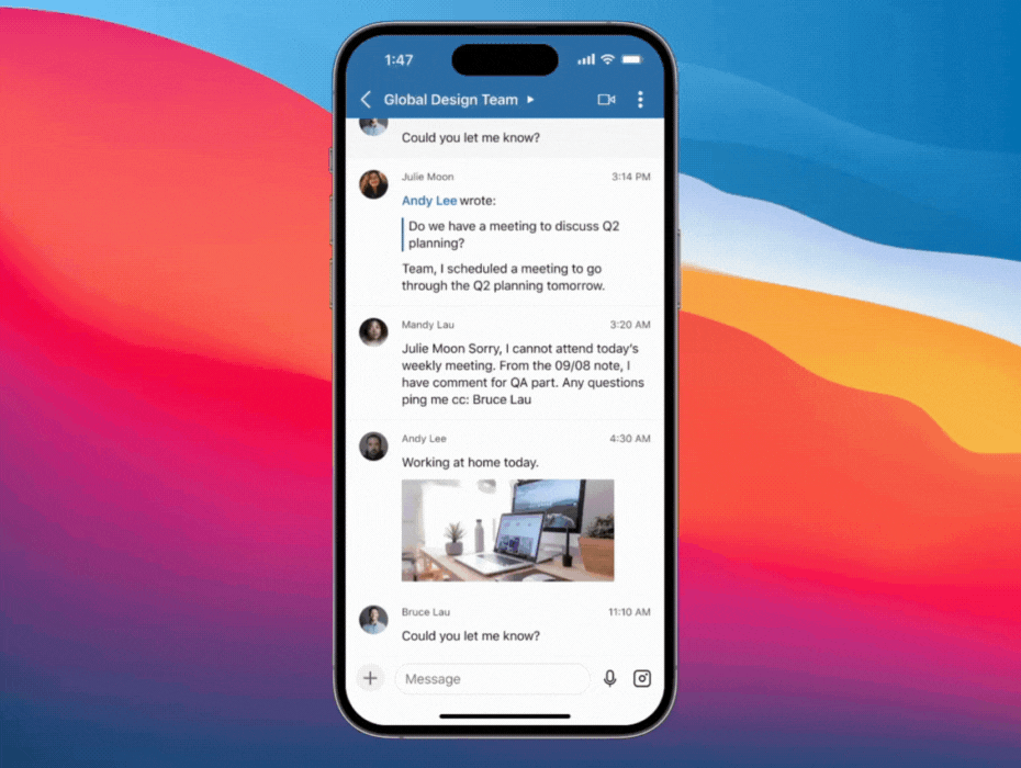 Share recordings in any 1:1 or team chat, and forward them easily when more teammates need to be in the loop. Your team can play back, download, or save messages, ensuring important details are always accessible.