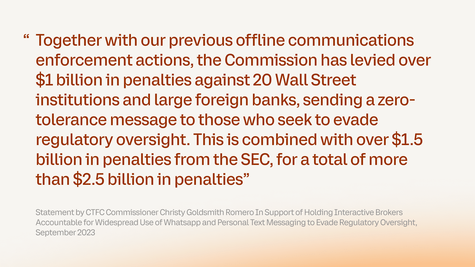 Fines from US regulators for unmonitored communications and recordkeeping failures now total more than $2.6bn, with no signs of slowing. In fact the regulatory net has been cast even wider to include not only banks, but also brokers, investment advisers and credit rating agencies. The list of regulators taking enforcement action is growing too.