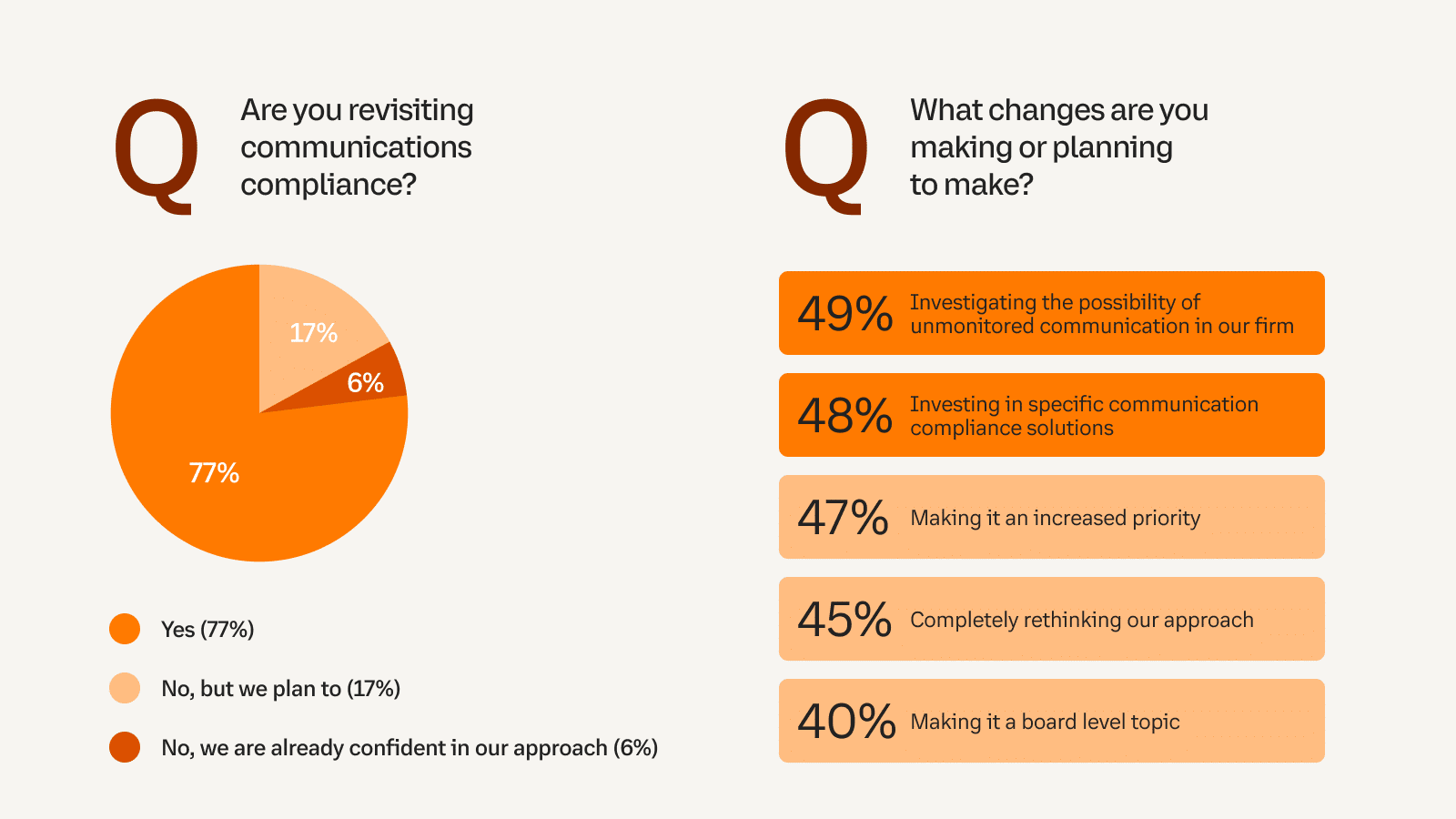 Of particular concern is the three quarters (74%) of respondents reporting that it is likely that their employees are using unmonitored communications channels, up from 66% in 2022.