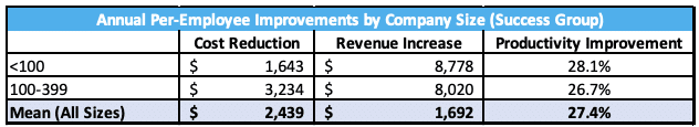 Survey respondents who saw measurable benefits from their communications investments achieved, on average, the following results: