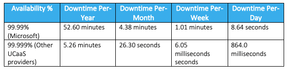 It’s true that Microsoft offers 99.99% reliability, but some other UCaaS solutions offer 99.999% reliability instead. You may not think that the extra 9 matters much, but it does. It’s the difference between 52.6 minutes of downtime per year versus 5.26 minutes per year.