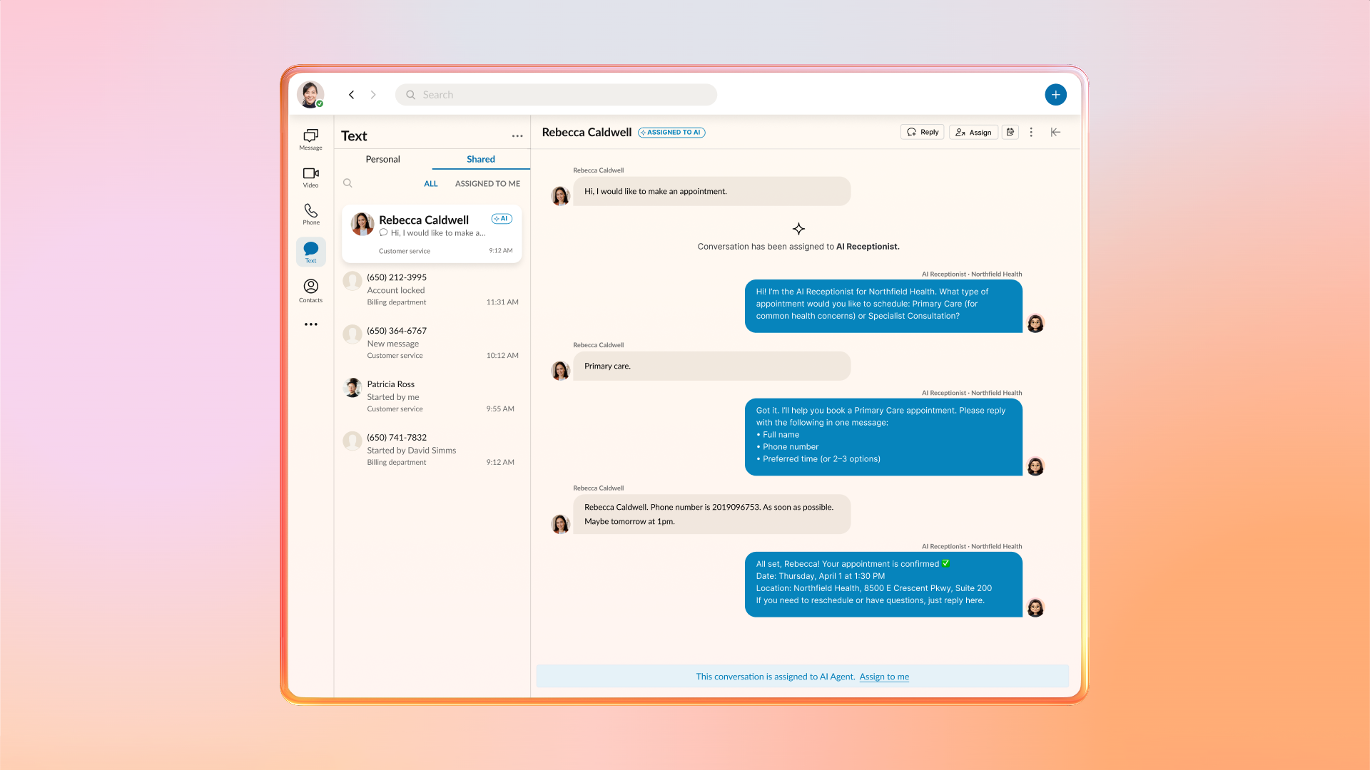 RingCentral continues to expand the role of AI across channels with two new enhancements to AI Receptionist. First, AI Receptionist now extends into shared SMS inboxes, enabling businesses to automatically respond to customer inquiries via messaging.