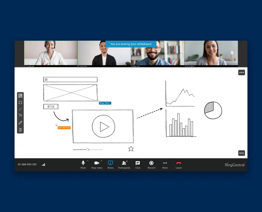 Users on the RingCentral desktop app can share content to a meeting room via Bluetooth without needing to connect to a video meeting. As long as you’re in range, you can transfer the content.