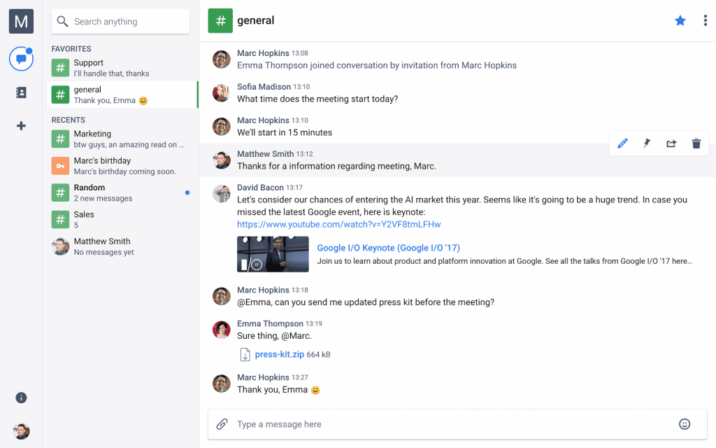 The platform’s interface may be simple and lack customization features, but that might be a bonus for teams looking for a no-frills team messaging apps.