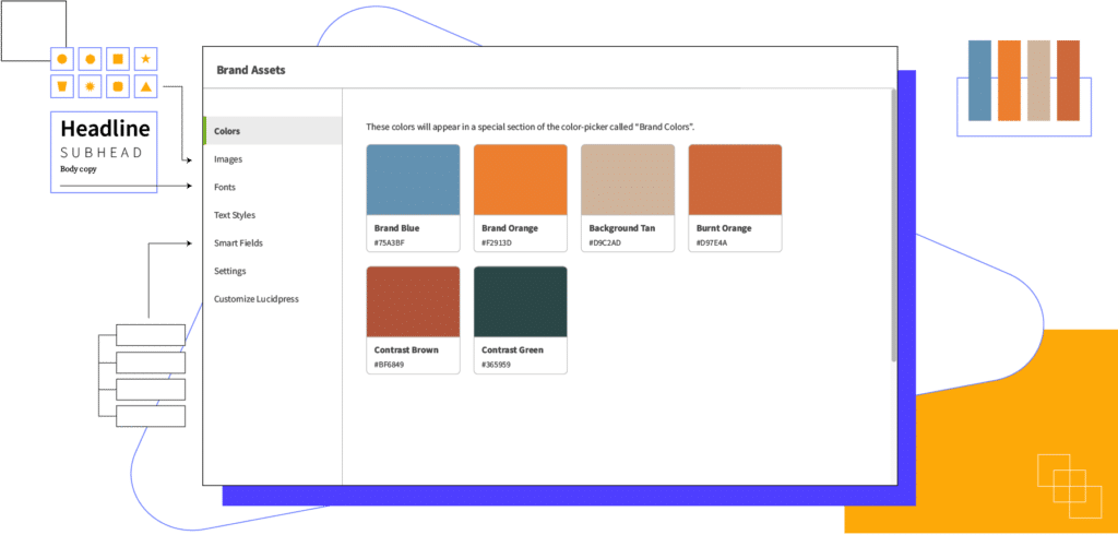 Another notable feature is the ability to save branded color schemes and past assets. Managers can likewise control who has access to particular materials through permissions or “lock” templates to avoid accidentally losing anything: