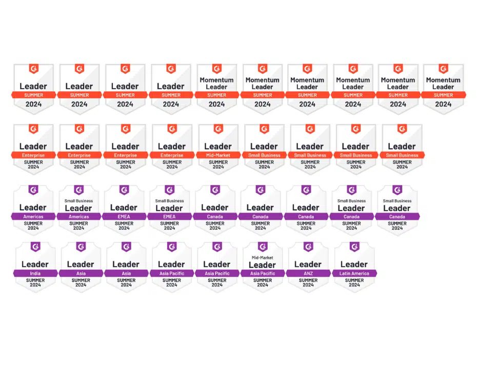 - These badges include:Momentum Leader, Leader across different segments such as Enterprise, and Leader across different regions such as EMEA