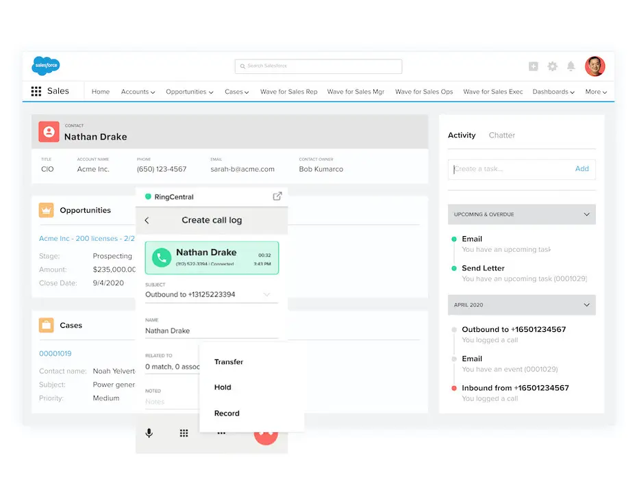 - Click-to-call: Users can place calls from within Salesforce by clicking on any phone number, saving time and improving call efficiency.