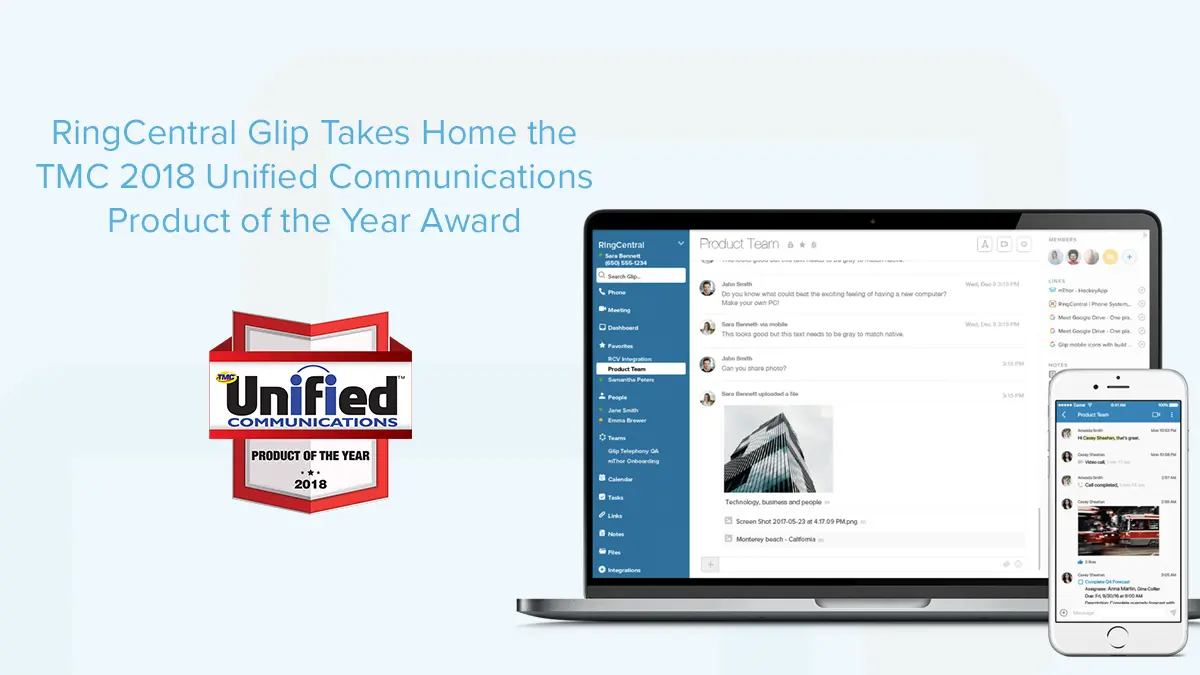 We’re excited to share that TMC, the world’s leading business-to-business and integrated marketing media company, has named RingCentral Glip (now RingCentral Video Pro) a winner of the 2018 Unified Communications Product of the Year Award presented by INTERNET TELEPHONY magazine.