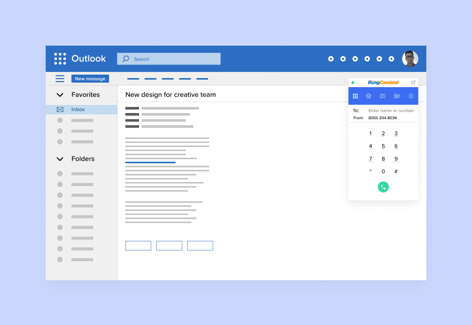 - Use the dialpad from your email. Use it to make calls straight from your email inbox without having to launch the softphone on the RingCentral app separately. You can also just type in a name and it’ll start pulling up information from your contacts.