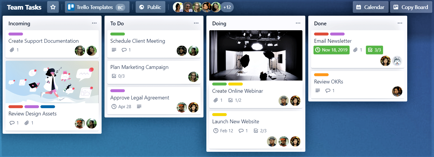 - Project management platforms (e.g., Trello, Asana), which highlight employees’ to-do lists, tasks, and ongoing progress