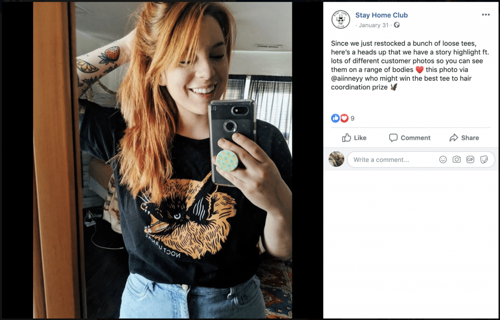 Stay Home Club’s use of user-generated content to promote their clothing restock.