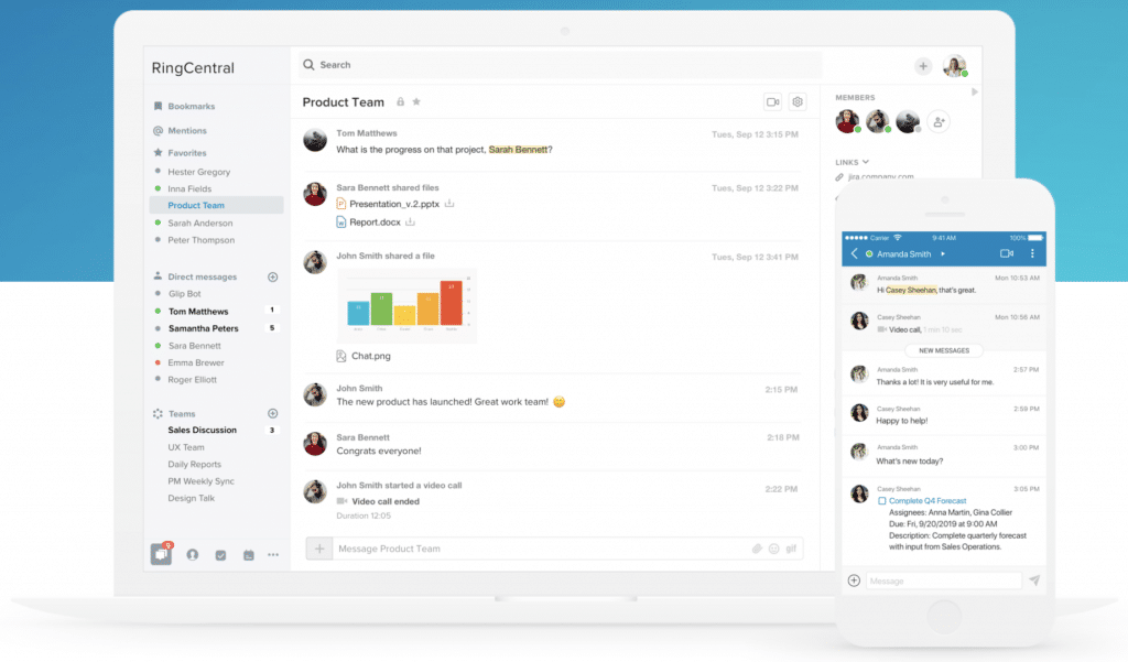 RingCentral lets your team message each other in real time, share files, and even create channels and teams for specific projects—like planning a social media campaign!