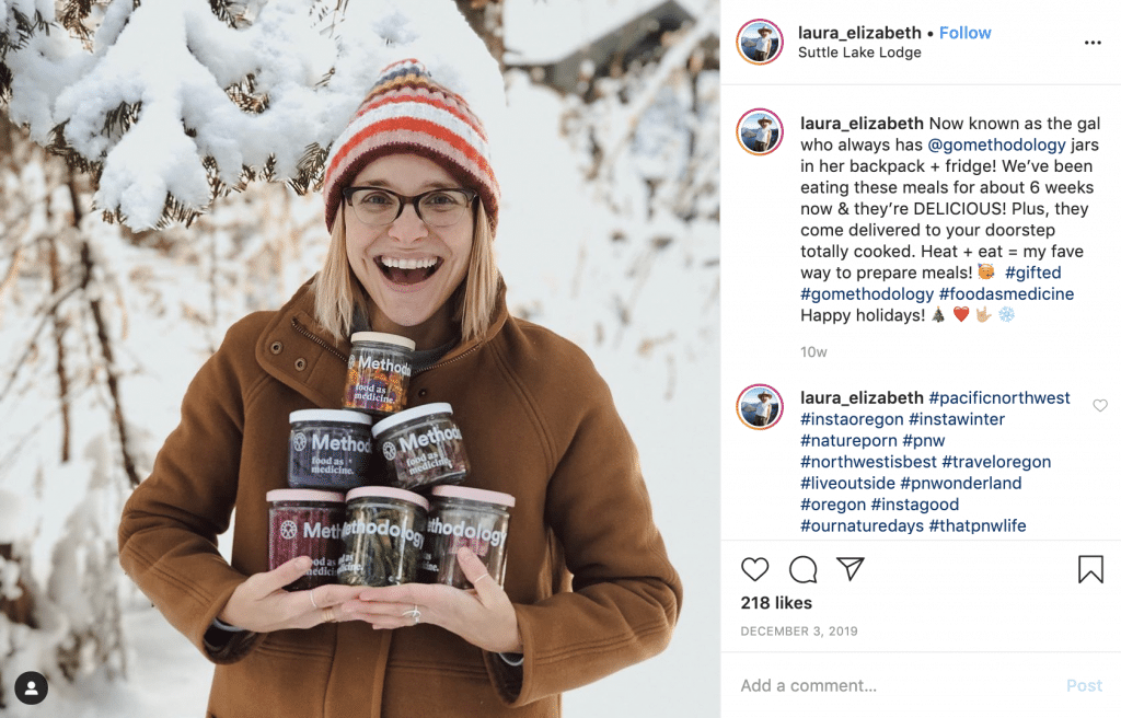 Laura Arbo promotes Methodology, a meal prep service, on her Instagram.