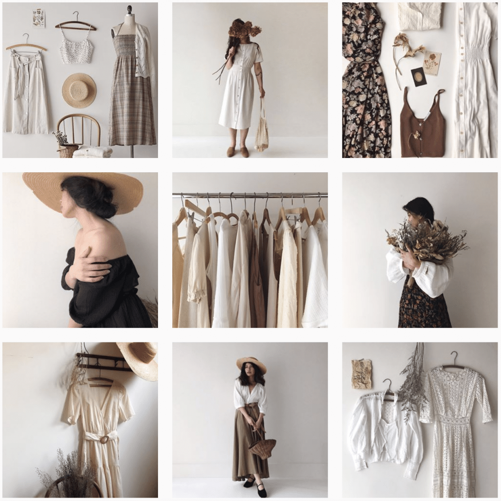 Adored Vintage sticks with neutral tones on their social media, even though not all their available clothing falls within that color palette.