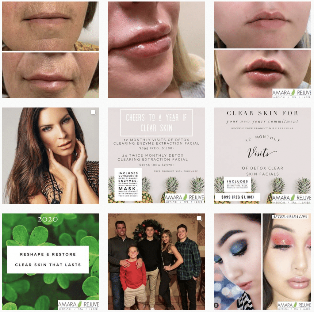 While Amara Rejuve Medical Spa does a great job of showing off their before & afters, they could strengthen their brand image by keeping consistent with the type of content they post as well as their color palette.