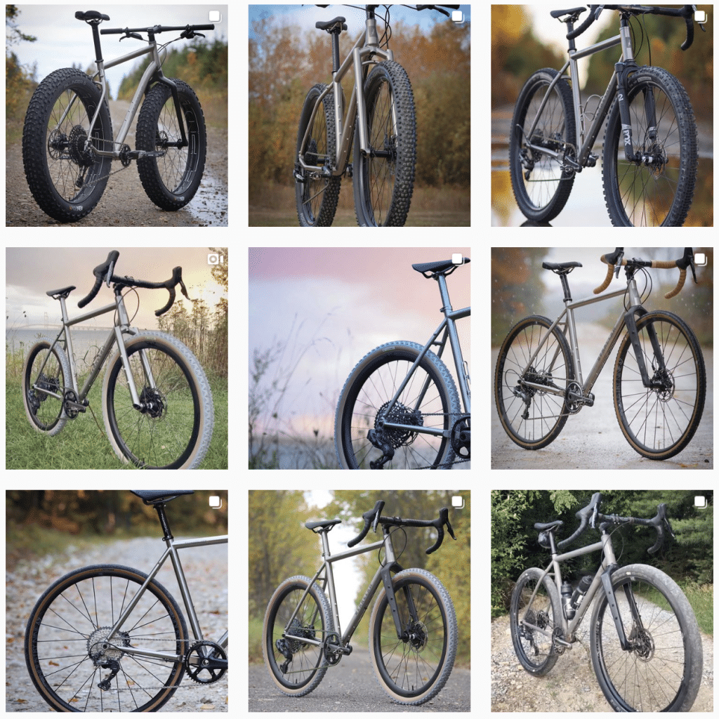 Bearclaw Bicycle Co. keeps their Instagram simple and consistent with photos of bicycles outdoors.