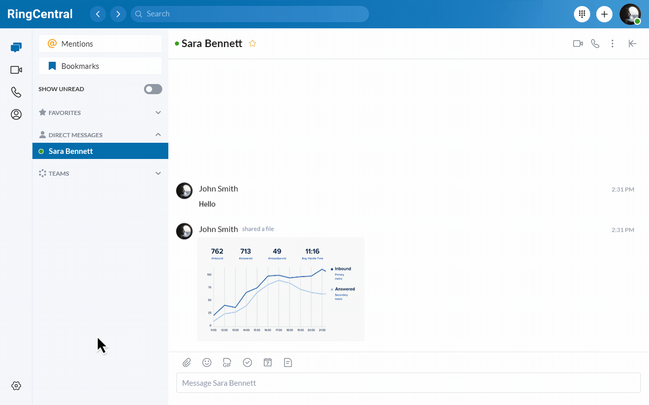 This becomes even more crucial as your business grows, so your communication solution needs to be scalable. An all-in-one communications solution like RingCentral and its VoIP phone service will allow you to enjoy features such as a business phone service, virtual phone number for business and contact center. RingCentral enables you to integrate all of your communications like voice calling, direct messaging, and one-click video conferencing: