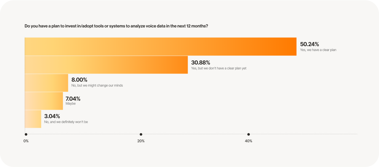 Particularly noteworthy is the interest in AI tools for voice data analysis. While contact centers have only recently begun exploring these capabilities, they represent a significant opportunity to extract value from a traditionally underutilized data source: voice data.