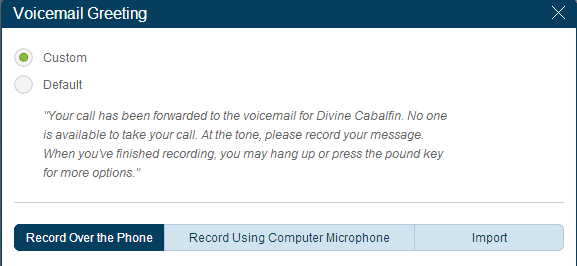 To create a custom voicemail greeting (for accounts on the most recent version of the RingCentral interface):
