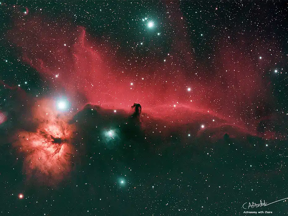 One virtue that applies to astrophotography, in particular, is patience. It takes a tremendous amount of time to collect the amount of data required for one astrophotograph. Sometimes, a photographer is simply waiting for the earth to rotate so certain stars of objects like nebula or galaxies come into view. A mind-boggling seven hours of data was compiled to compose Claire’s favorite 2022 photo of the Flame and Horsehead Nebula.