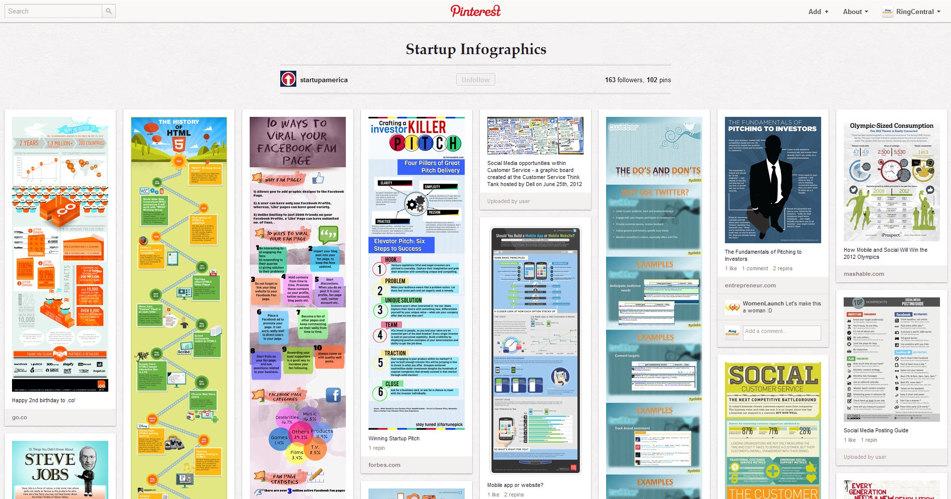 Infographics are all the rage and very well-suited for the Pinterest audience. In general, infographics are both visually-appealing and informative, containing statistical and industry data – perfect for the B2B audience. Consider creating your own infographic with data that’s available on the Internet (just make sure you include sources) to position your company as a thought leader on a specific topic. Entrepreneur organization Startup America has a great infographic board.