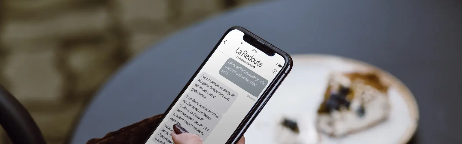 La Redoute was one of the first French companies to adopt Apple Business Chat in October 2018. This Apple feature allows customers to contact businesses via the Messages app, from any type of Apple device (iPhone, iPad, Mac…) Conversations can be initiated via a button on the site and in the La Redoute application, for requests related to order tracking, return of parcels, product information, after-sales service.