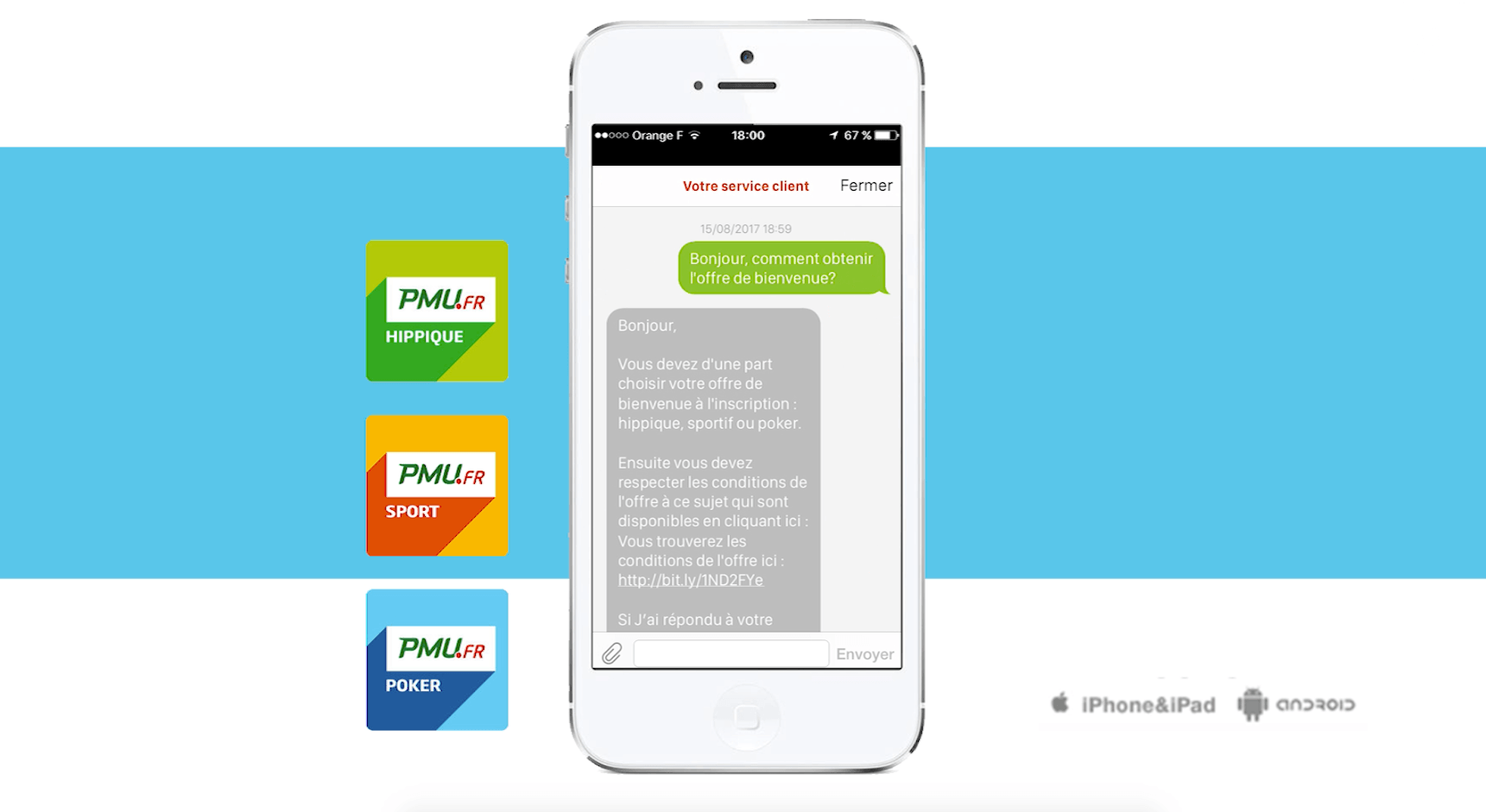 The same year, PMU integrated an instant messaging system into its “PMU Sport” app, thanks to Dimelo Mobile. Then, PMU was one of the first French companies to develop this feature.
