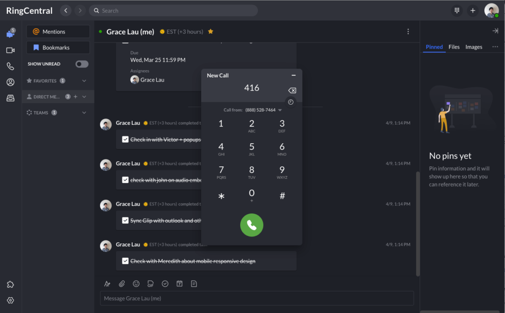 For instance, instead of having stand-up meetings every day (or every other day), why not just update each other via messaging? Here’s how that looks in the RingCentral desktop app (which is also available on mobile):